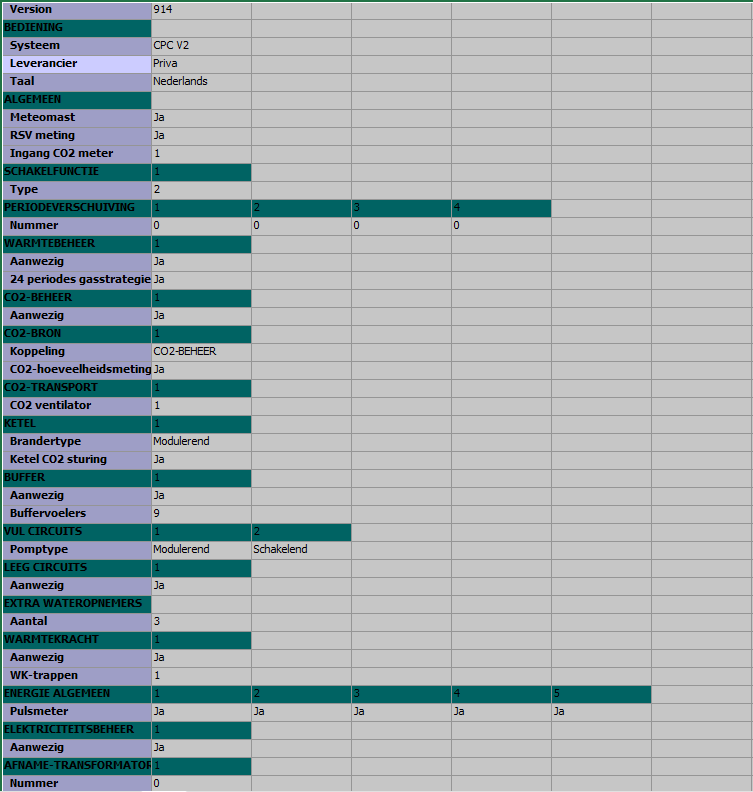 Het vermelde Priva Compact systeem (CPC02) is uitgevoerd met software Compact Versie 815 inclusief Windows PC en bedieningssoftware: Priva Office Direct 9. Wordt geleverd met benodigde stuur- en meetprinten, geinstalleerd in Priva Connext kast.