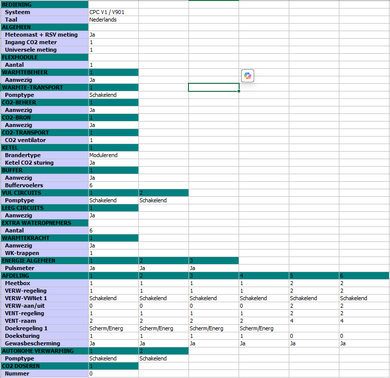 Het vermelde Priva Connext systeem (CPC V01) is uitgevoerd met software Compact Versie 901 inclusief Windows PC en bedieningssoftware: Priva Office Direct 9. Wordt geleverd met benodigde stuur- en meetprinten, geinstalleerd in Priva Connext kast.